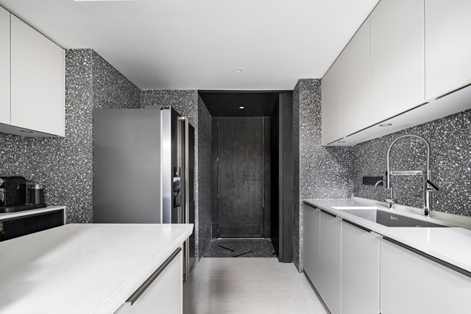 台面与墙面交接区域设置挡水条,如果墙砖铺贴的平整度不好,容易在台面和墙面之间产生缝隙,而后挡水能够有效的填补两者之间产生的缝隙,在视觉上起到美观收口的作用。